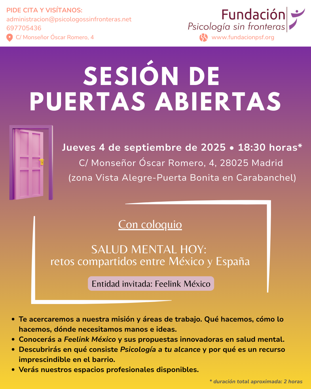 💜 Charlaremos en un coloquio con el público sobre algunos de los retos en salud mental en contextos sociales complejos como los que se presentan hoy en día: escasos recursos económicos, precariedad laboral, problemas de acceso a la vivienda, suicidio, soledad, migraciones, etc.