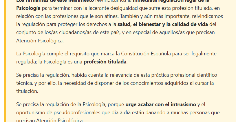 Firma el manifiesto y difúndelo para que llegue a todas las personas interesadas en que la Psicología sea reconocida como merece: