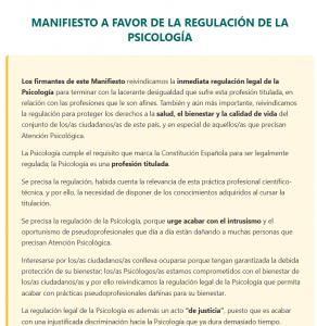 Psicología Sin Fronteras impulsa un manifiesto por la regulación legal de la psicología
